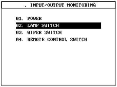 4. Select "Input/Output monitoring" and "Lamp switch". Check auto light & wiper value.