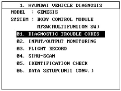 8. To check the DTC of the multifunction switch, select "DIAGNOSTIC TROUBLE CODES"