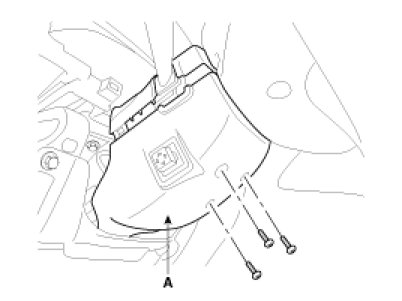 2. Remove the steering column upper and lower shrouds (A) after removing 3 screws and connector.