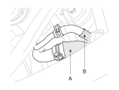 10. Disconnect the fuel filler hose (A) and the leveling hose (B).