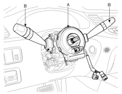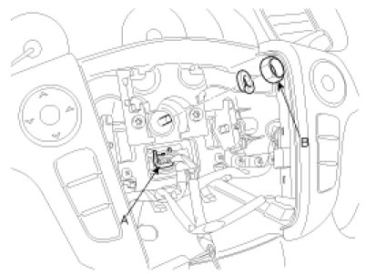 6. Remove the clock spring (A) and multifunction switch (B).