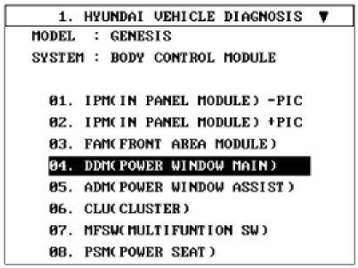 3. Select option "DRIVER DOOR MODULE".