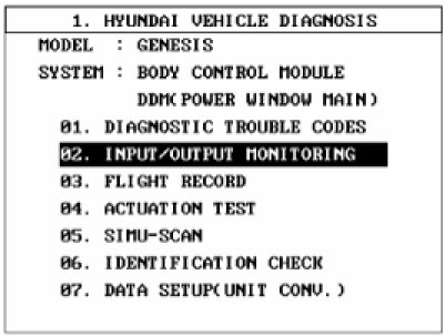 2. To check the input value of door lock switch, select option "BODY CONTROL MODULE".