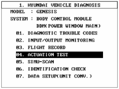 5. To check the input value of door lock switch in force mode, select option "ACTUATION TEST".