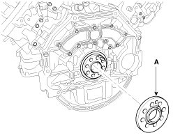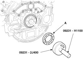 14. Using the SST(09231-2J400, 09231-H1100) and a plastic hammer, tap in a new oil seal(A) until SST surface is flush with the cylinder block.