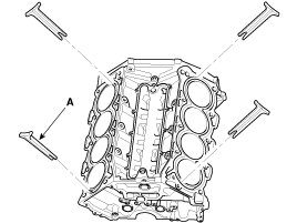19. Lift the crankshaft (A) out of engine, being careful not to damage journals.