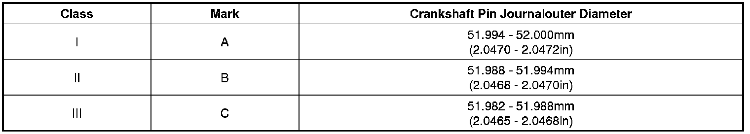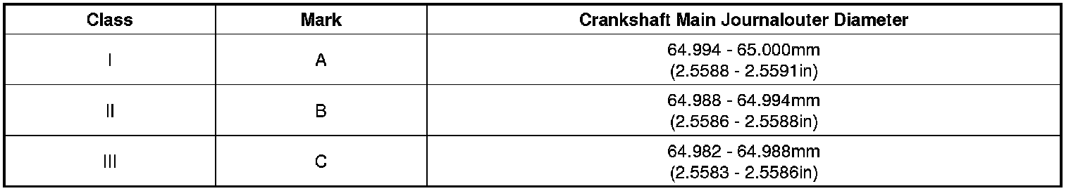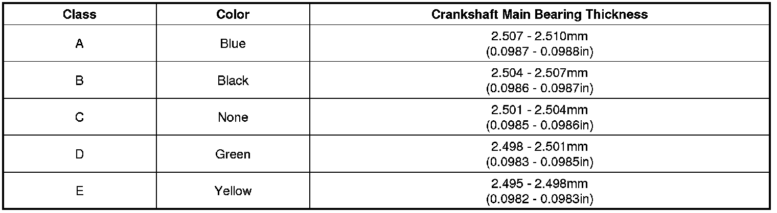 If the proper clearance cannot be obtained by using the appropriate larger or smaller bearings, replace the crankshaft and start over.