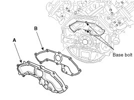 11. Remove the cylinder block bank cover (A) and the gasket (B).