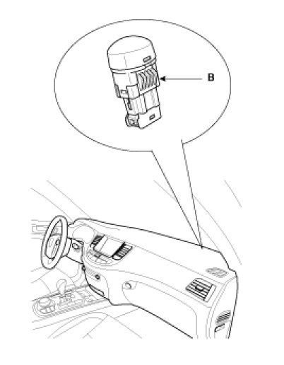 2. With the (-) driver, remove the photo sensor (B) from the center of defrost nozzle.