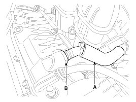 1. Insert a thin stick (A) into the PCV valve (B) from the threaded side to check that the plunger moves.