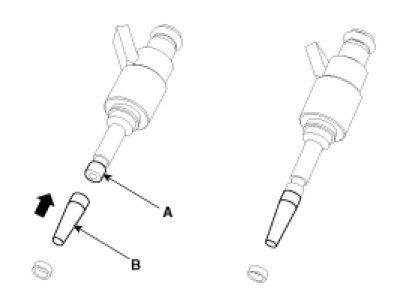 3. Place the seal installing guide (B) (SST No.: 09353-2B000) on the tip of the injector not to damage the injector tip (A).