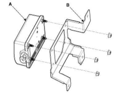 1. Assemble the smart cruise control unit (A) to the bracket (B) correctly.