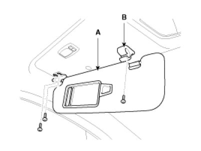 1. Loosen the mounting screws, then remove the sunvisor (A) and retainer (B).