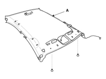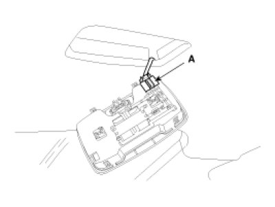 1. After loosening the mounting screws, remove the overhead console (A).