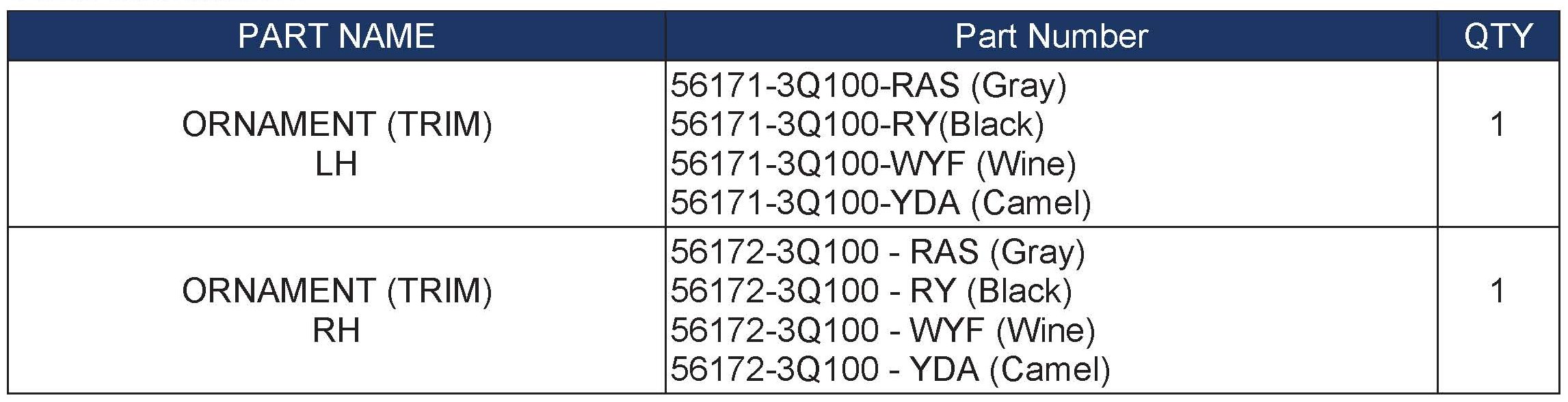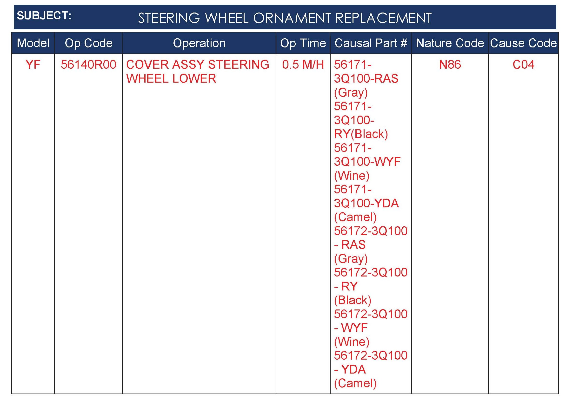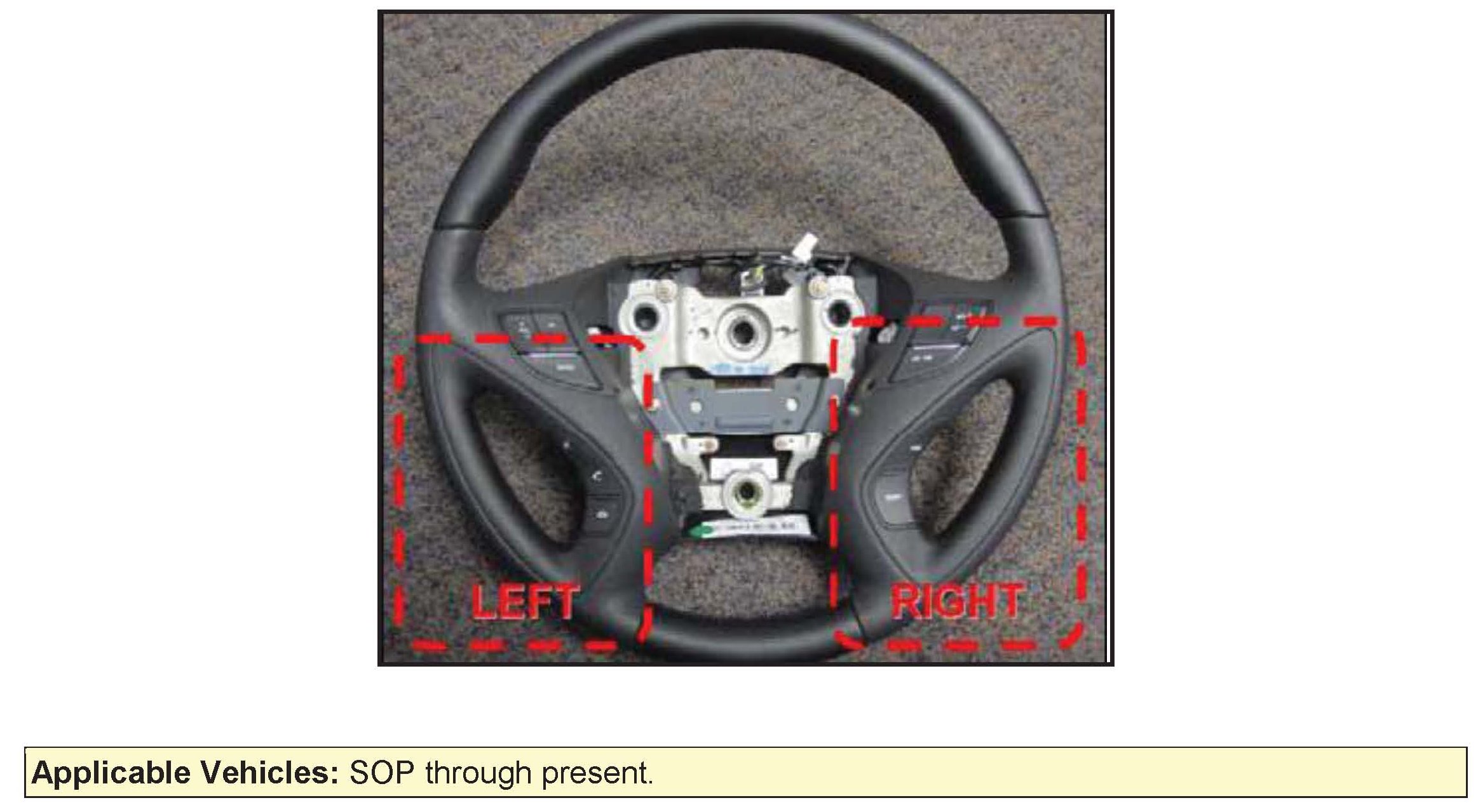 This bulletin supersedes TSB 10-BD-006 The Steering Wheel does not need to be replaced if only the trim is damaged. This TSB also provides the procedure to replace the LH or RH trim pieces on the Steering Wheel Assembly and revises the previously published part numbers