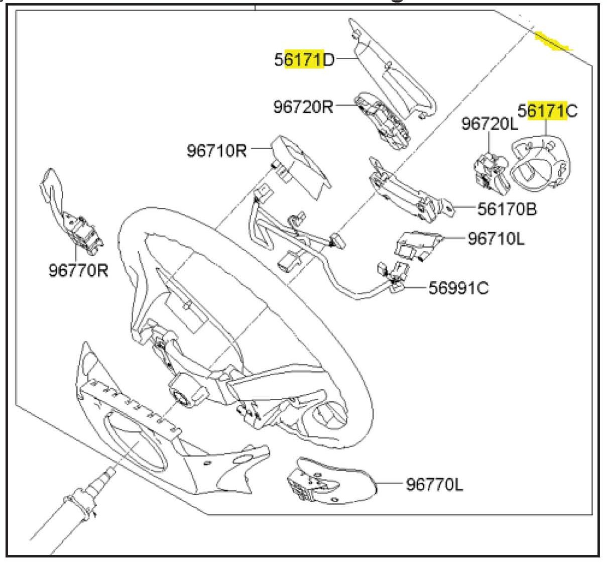 Hyundai Parts Catalog illustration of the Lower Steering Wheel Trim Assemblies: