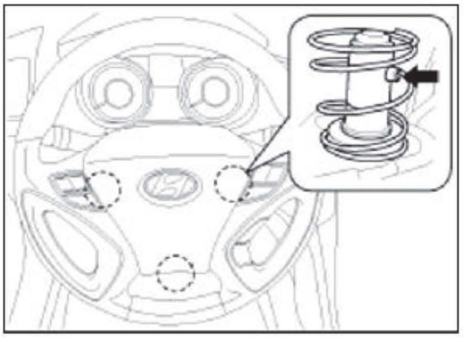 2. Press the (3) snap fit pin stoppers to remove the driver airbag module from the steering wheel.
