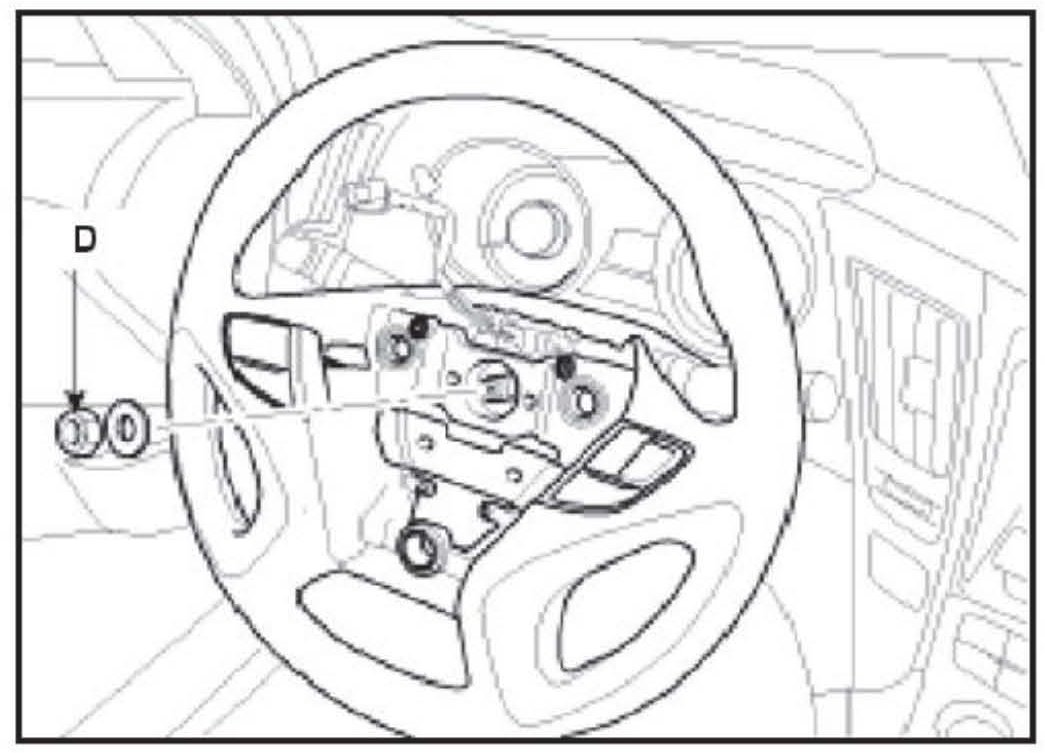 b) Remove lock nut (D) and then remove the steering wheel from the steering column shaft.