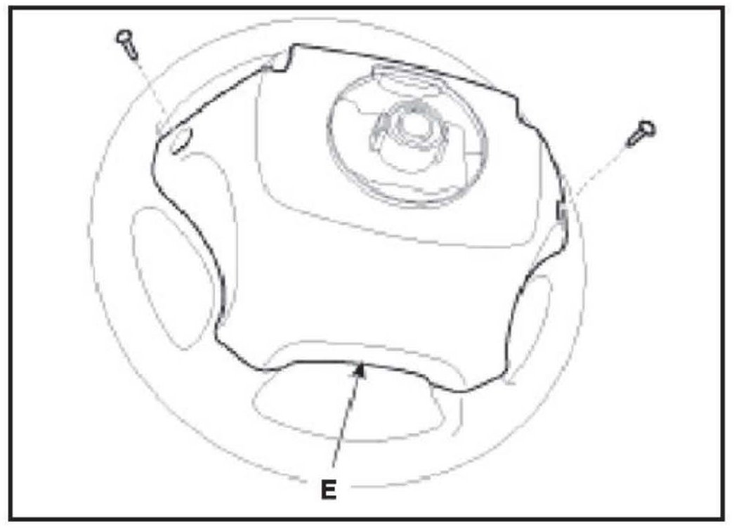 5. Loosen the (3) screws to remove the steering wheel cover (E).