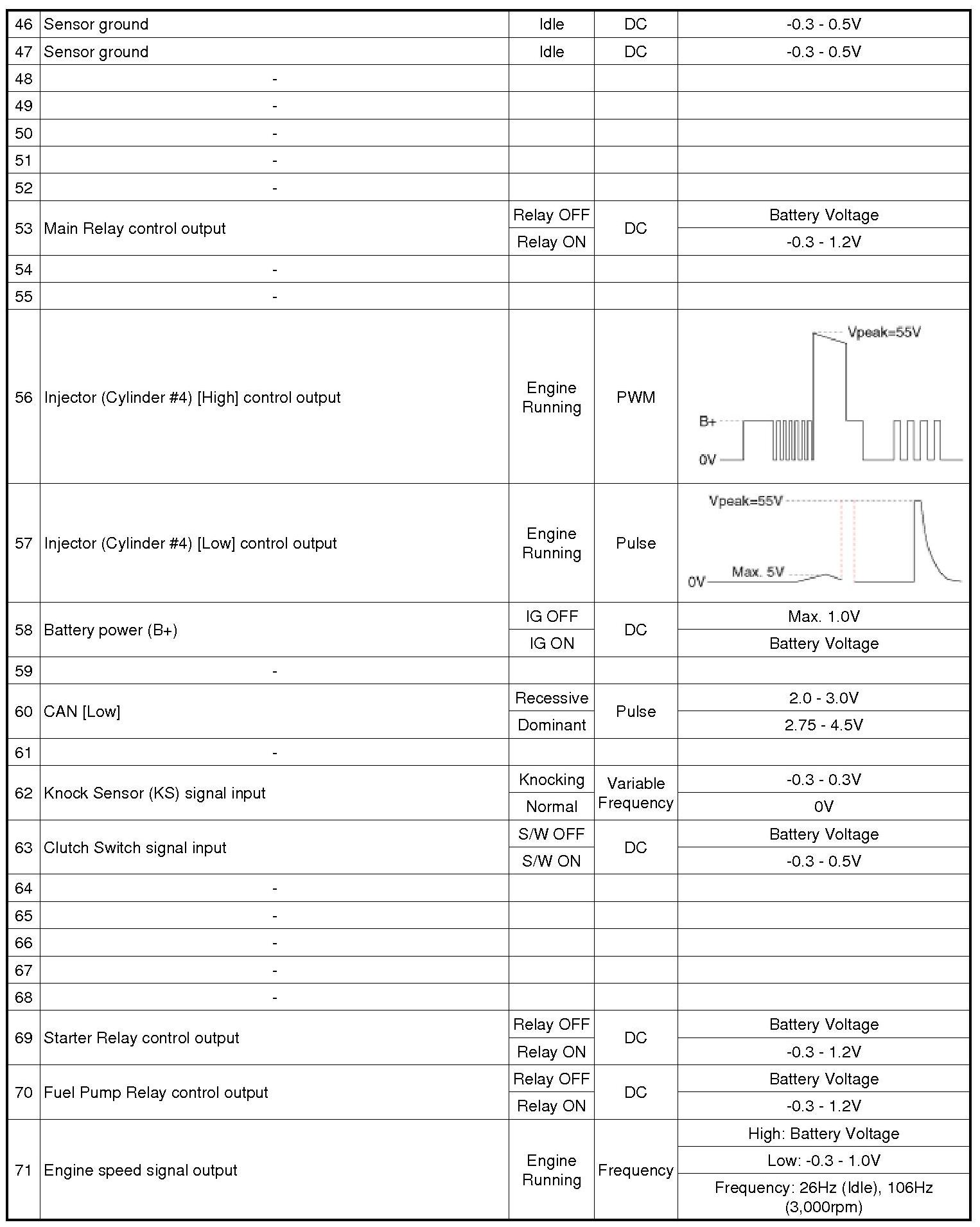 ECM Terminal And Input/Output signal