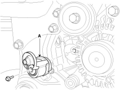 27. Remove the drive belt tensioner (A).