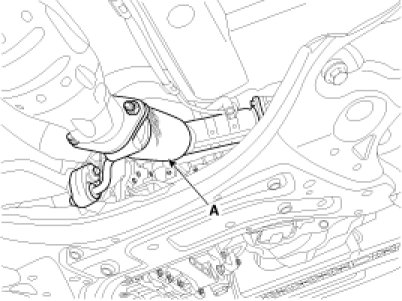 3. Disconnect the oxygen sensor connector (A) and then remove the exhaust manifold heat protectors (B).