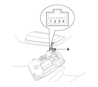 1. Check that the switch operates properly after disconnecting the room lamp connector (A).