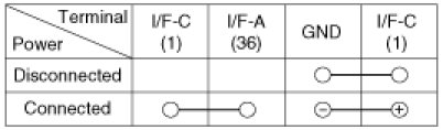 1. There should be continuity between the No.1 terminal in the I/F-C and No.36 terminal in the I/F-A when power and ground are connected to the No.1 terminal in the I/F-C and ground.