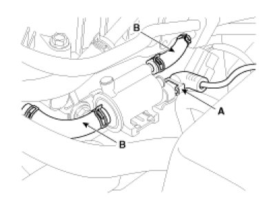 3. Disconnect the vapor hoses (B) from the purge control solenoid valve.