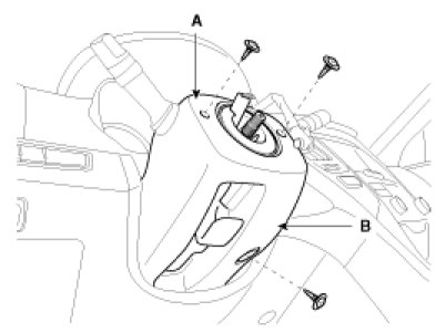 5. Remove the steering column upper (A) and lower (B) shroud.