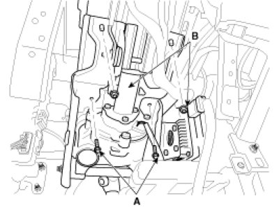 12. Remove the steering column by loosening the mounting bolts (A) and nuts (B).