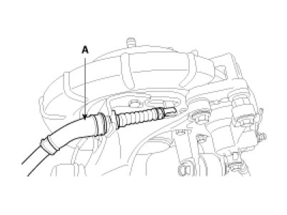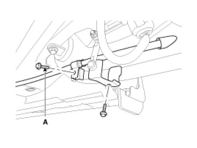 4. Loosen the parking brake cable bracket bolt (A).