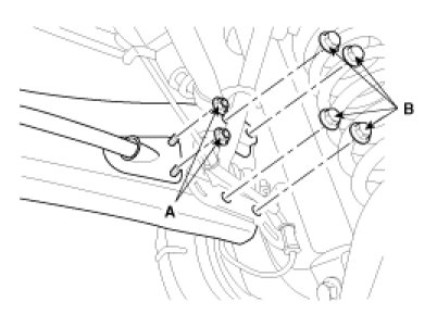 3. Loosen the parking brake cable bracket nuts (A) & trailing arm mounting nuts (B) and then remove the trailing arm with the rear axle.