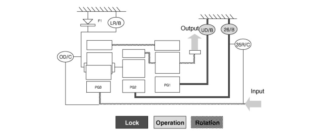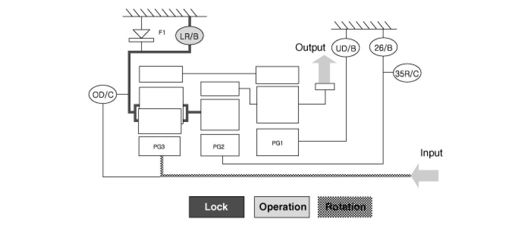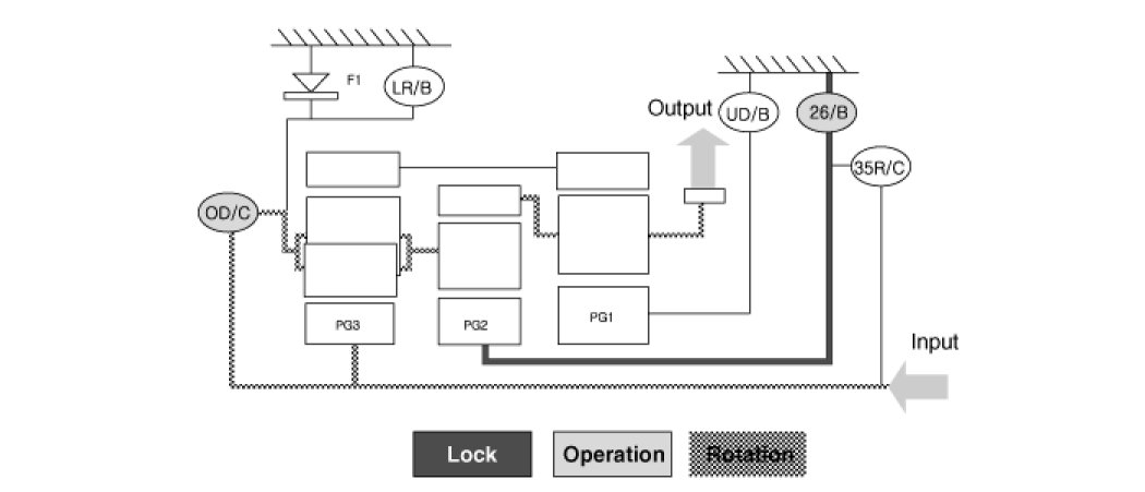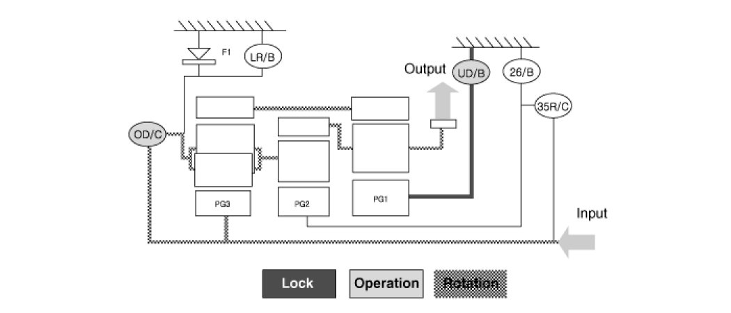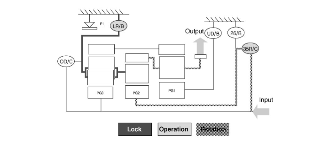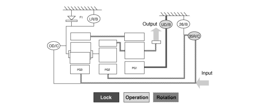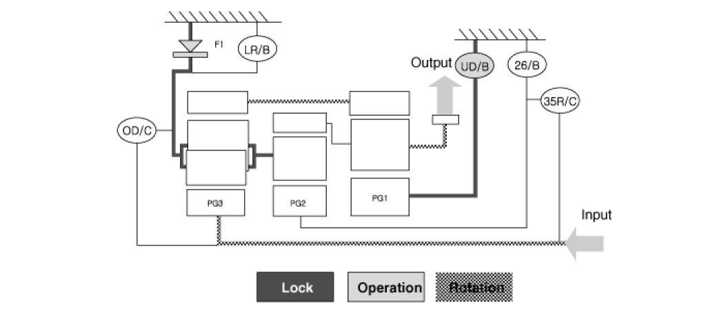 >Input shaft rotation -> Overdrive Clutch (OD/C) Retainer Rotation
