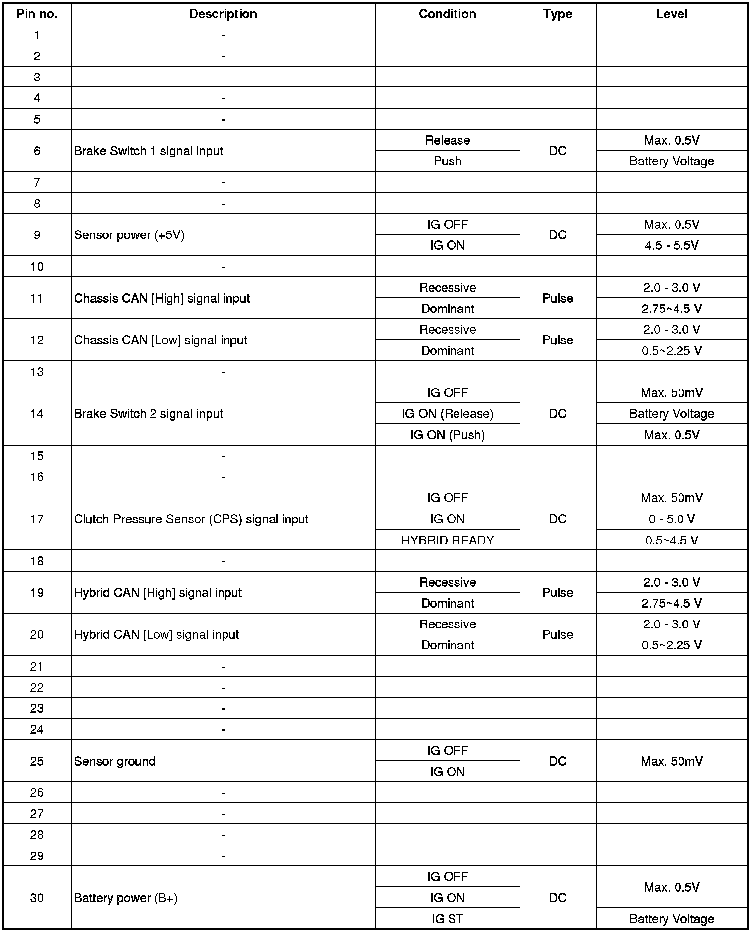 HCU Terminal And Input/Output Signal