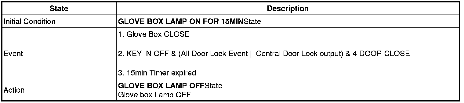 1. If GLOVE BOX is OPEN, LAMP is turned ON for 15min.