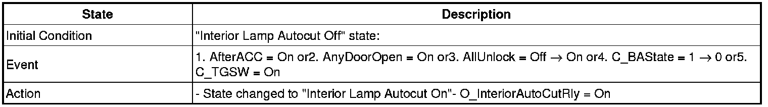 1. Transitions from "Interior Lamp Auto cut Power Off" state: