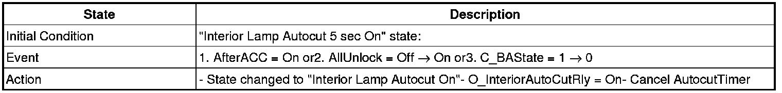4. Transitions from "Interior Lamp Auto cut Power On" state: