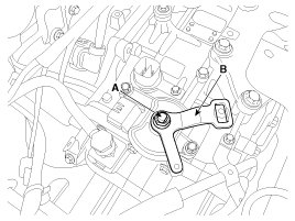 6. Remove the manual control lever (B) and the washer after removing a nut (A).