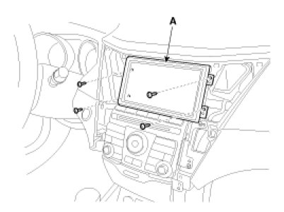 3. Remove the crash pad center fascia panel (A), after loosening the mounting screws.