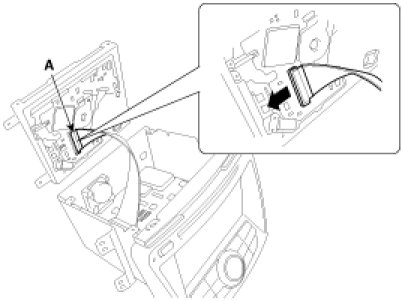 1. Remove the top cover (A) from the audio head unit after loosening the mounting screws.