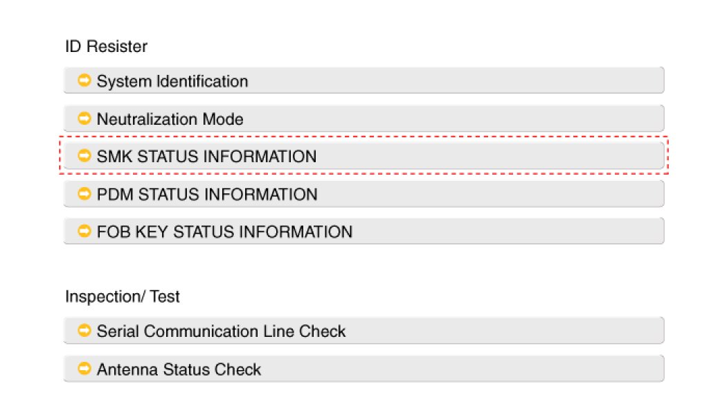 2. After IG ON, select the "SMK STATUS INFO".