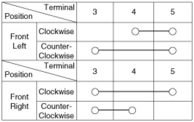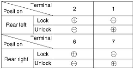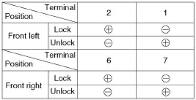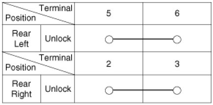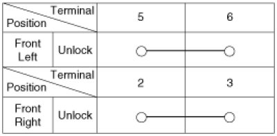4. Check for continuity between the terminals in each switch position when inserting the key into the door according to the table.