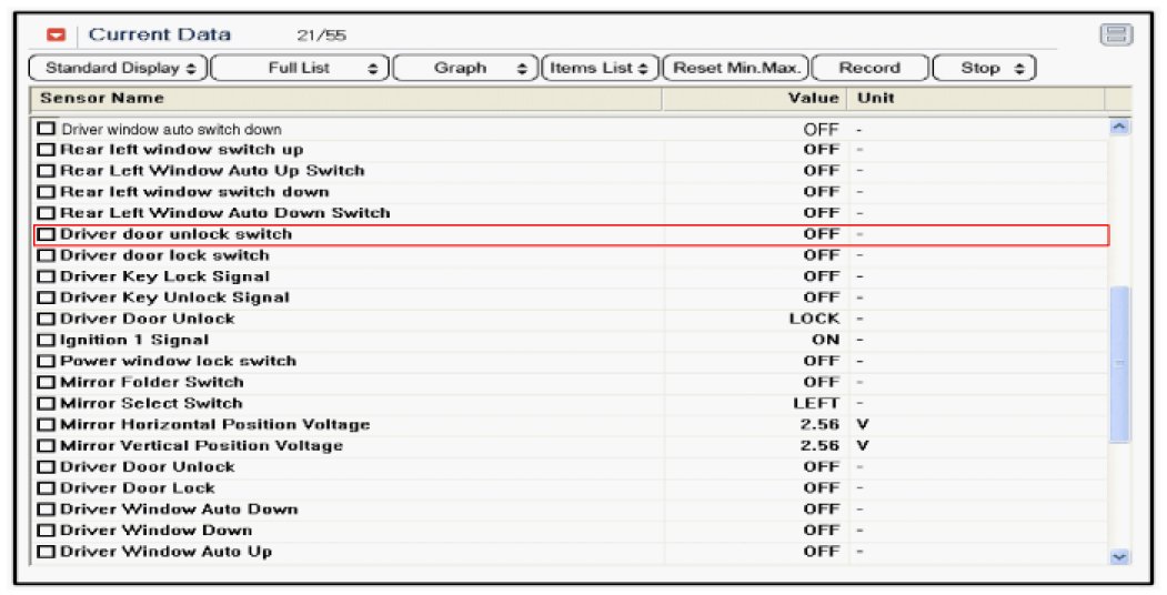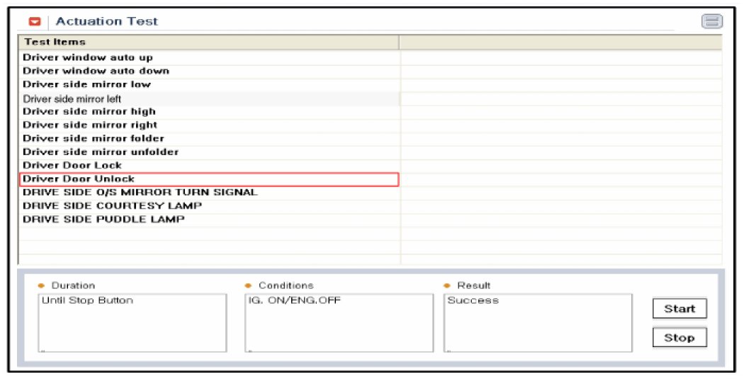 1. It will be able to diagnose defects of power door lock with GDS quickly. GDS can operates actuator forcefully, input/output value monitoring and self diagnosis.