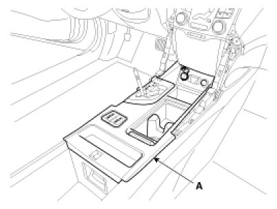 3. Disconnect the multimedia jack connector (A) from the floor console upper cover.