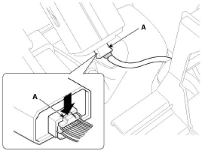 4. Remove the seat heater switch connectors from the floor console upper cover (A).