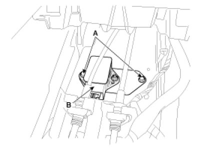 3. Disconnect the yaw rate & lateral G sensor connector (B).