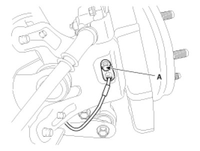2. Remove the rear wheel speed sensor mounting bolt (A).