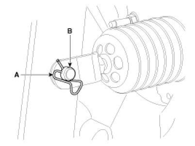 6. Remove the snap pin (A) and clevis pin (B).