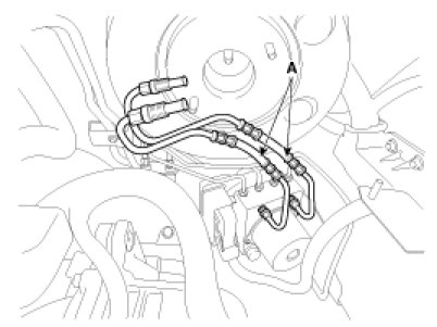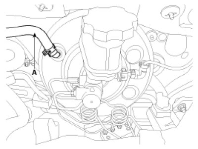 3. Disconnect the vacuum hose (A) from the brake booster.